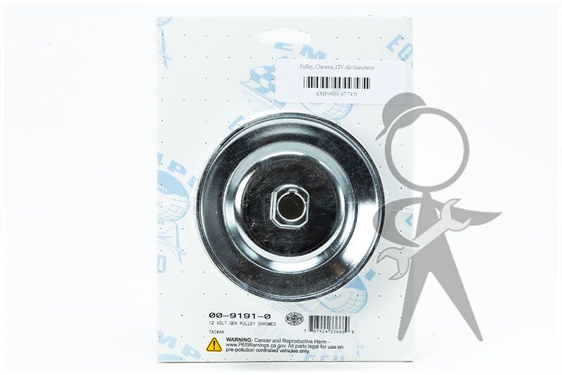 Pulley, Chrome, 12V Alt/Generator. (Note: will NOT fit Bus with 38amp Generator 69-71)