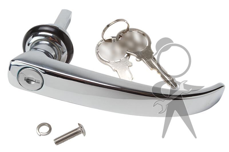From Vin 20-117-902. Square Shaft length is 1.5″. Fits all Buses except Panel Vans that do not have an Inside Door Handle. Locking, with Keys.